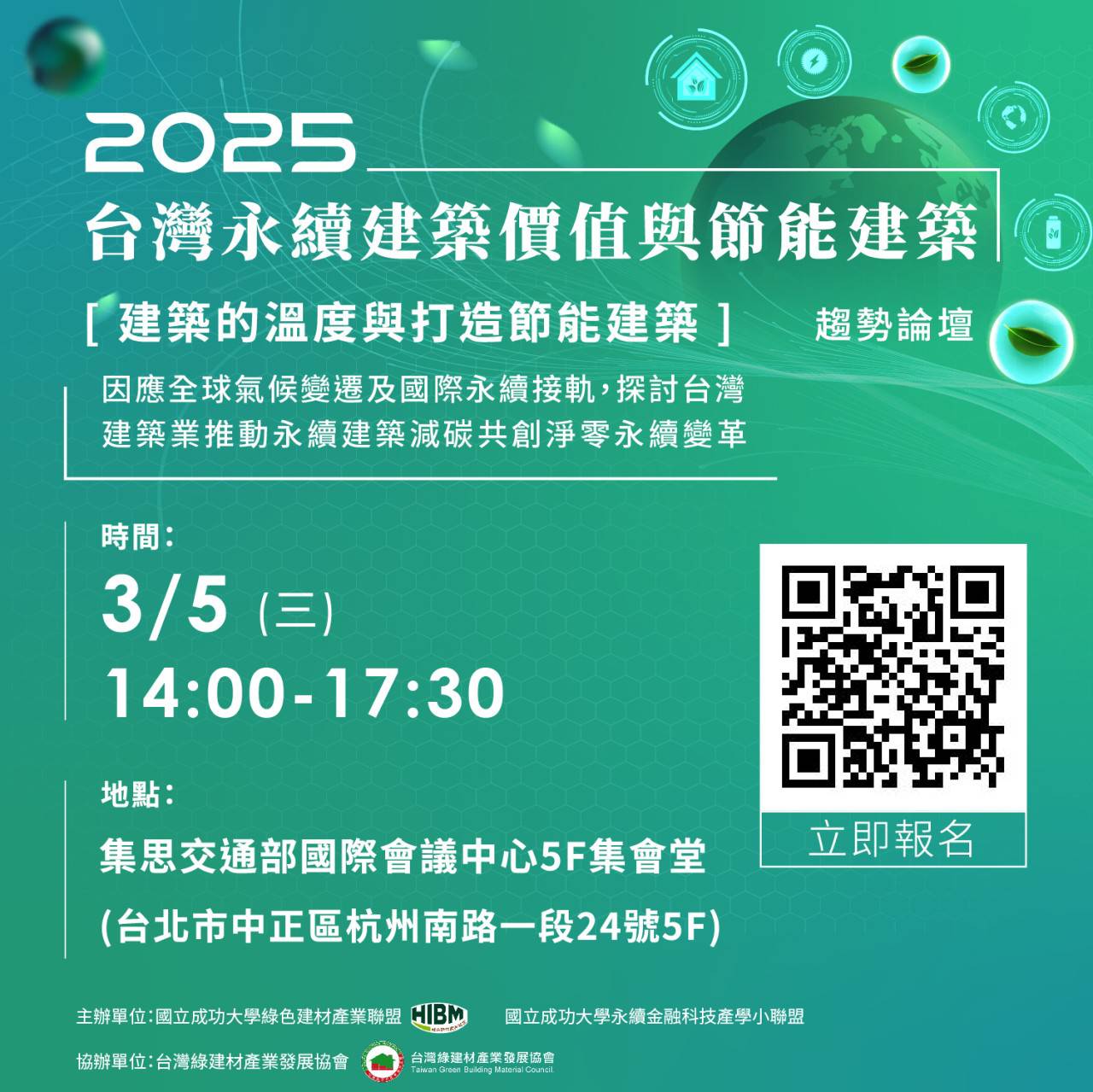 【活動訊息】2025台灣永續建築價值與節能建築趨勢論壇-2025年3月5號(三)14:00-17:30